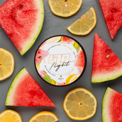 Тютюн 420 Light Кавун Лимон 250г - відчуйте смак соковитого, цукрового кавуна, доповненого яскравою лимонною кислинкою. Ця заправка, створена на основі добірного листа Virginia Gold, має неймовірно легкий та соковитий характер, що ідеально підходить для розслаблюючого куріння у спекотний день. Вона подарує вам густі хмари диму, наповнені яскравим та натуральним ароматом.