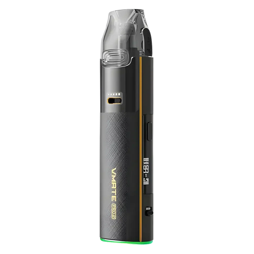VooPoo VMATE Pro 2 Pod Kit Gilt Black (Чорний) — це елегантна pod-система у класичному чорному кольорі з золотистими акцентами, яка поєднує стильний дизайн та сучасні технології. Стриманий вигляд і зручний корпус роблять її чудовим вибором як для щоденного використання, так і як стильний аксесуар.