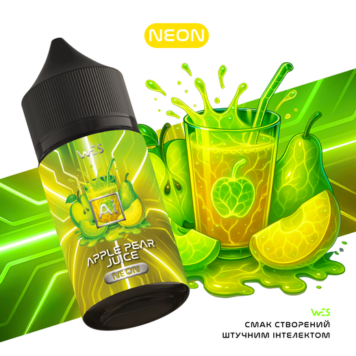 Набір сольової рідини WES Ai Neon Apple Pear Juice (Яблуко Груша Сік) 30 мл 65 мг — це ідеальне поєднання соковитого, солодкого яблука та ніжної, ароматної груші, що нагадує свіжовичавлений натуральний сік. Смак легкий, освіжаючий і збалансований, з приємною фруктовою солодкістю. Підвищена міцність 65 мг забезпечує дуже стабільну та швидку подачу нікотину.